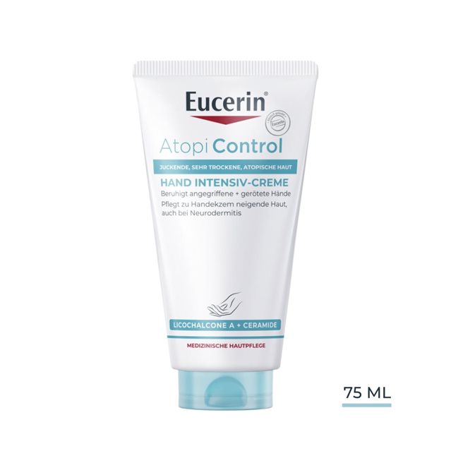 La Crème Mains Apaisante Eucerin® AtoControl lisse et apaise la peau des mains très sèches. La formule non grasse pénètre rapidement. Elle contient un complexe d'ingrédients actifs unique composé de Licochalcone A apaisante, de Décandiol antibactérien et de Methoxypropanediol (MPD) qui soulage les sensations de démangeaisons. Ce complexe, associé à une forte concentration de Céramides et d'Avena Sativa (avoine), agit comme un puissant hydratant. Il renforce la barrière cutanée, atténue la sécheresse de la peau et soulage les sensations de démangeaisons.