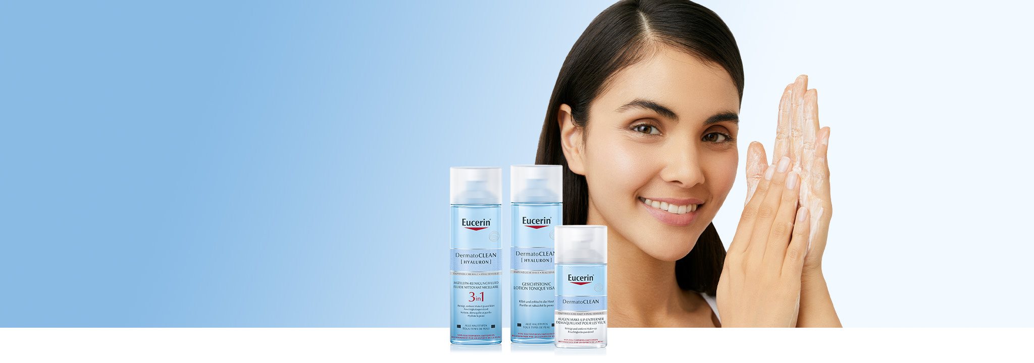 La gamme de nettoyants pour le visage DermatoClean est enrichie en Acide Hyaluronique, qui convient à tous les types de peau et à tous les besoins.