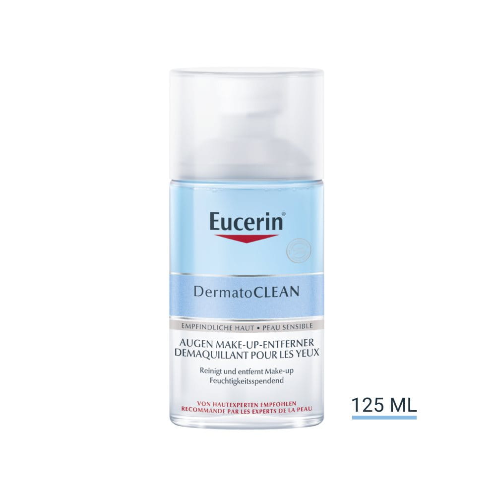 Le Démaquillant pour les yeux Eucerin DermatoCLEAN est idéal pour le nettoyage quotidien du visage de la peau sensible du contour des yeux - Testé sous contrôle ophtalmologique.