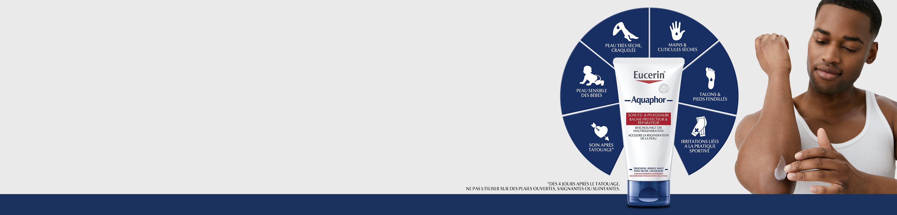 Une formule semi-occlusive à la vapeur peut parfaitement répondre à ces exigences. Le Baume Protecteur & Réparateur Eucerin Aquaphor accélère activement la régénération de la peau particulièrement fragilisée.