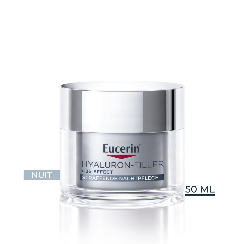 La peau se régénère pendant la nuit. Les crèmes de nuit ne se contentent pas d'hydrater la peau, elles contiennent également des ingrédients qui stimulent le processus de régénération cellulaire. Dans le Soin de nuit Eucerin Hyaluron-Filler, cet ingrédient est le Dexpanthénol, qui favorise le renouvellement cutané pendant la nuit.