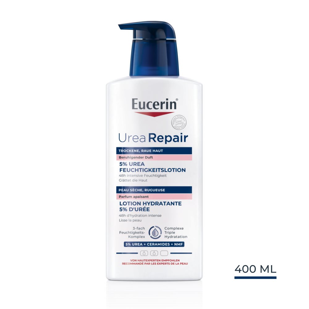 La Lotion Hydratante Eucerin UreaRepair 5% d'Urée (parfum apaisant), un produit légèrement parfumé de la gamme Eucerin UreaRepair combine une efficacité prouvée avec un parfum délicat et apaisant, formulé pour minimiser le risque d'allergies. Il a également été prouvé qu'il a une bonne tolérance sur la peau sèche, sensible. Vous pouvez donc désormais profiter du meilleur des deux mondes, sans compromis.