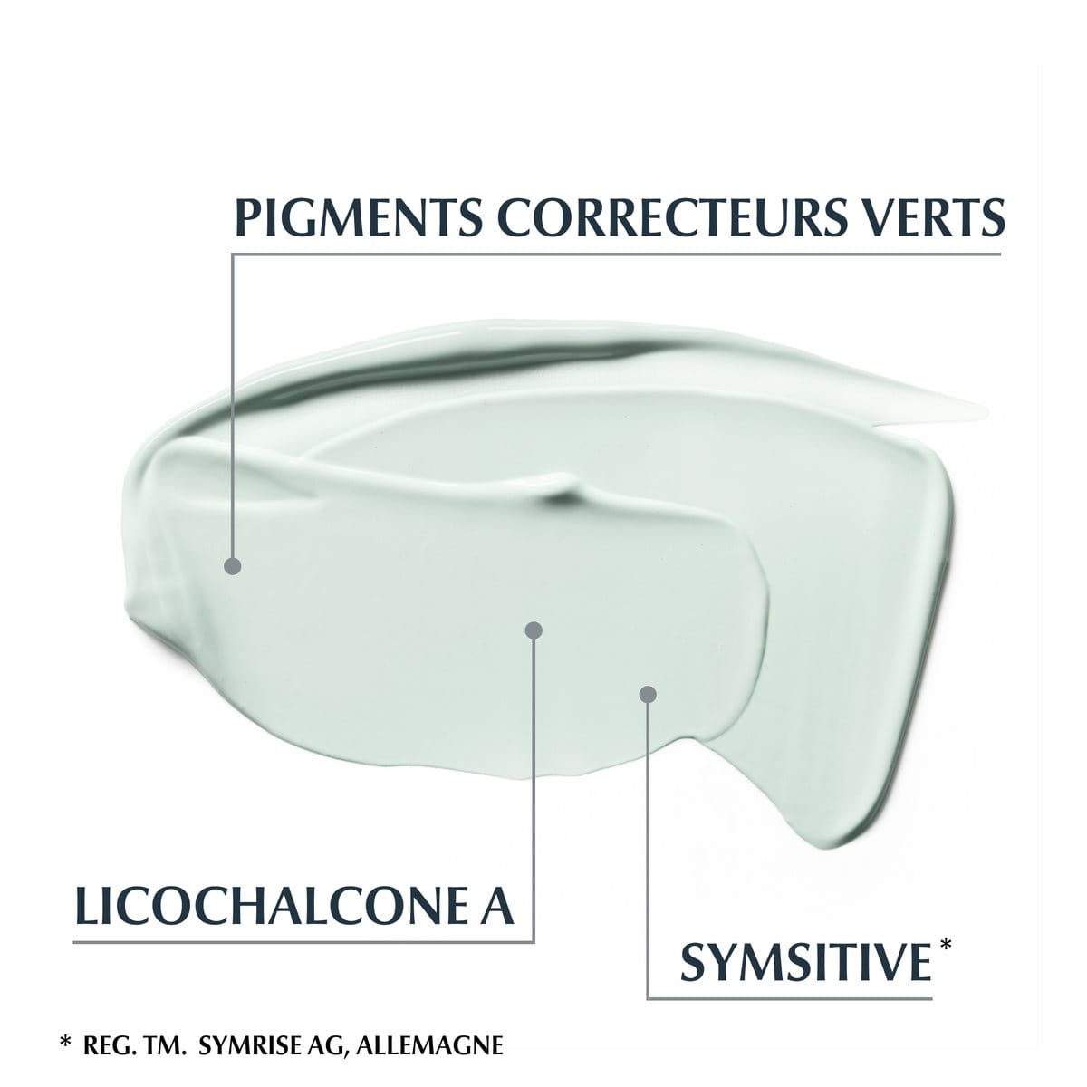 En plus de ces deux ingrédients, la crème contient également des pigments verts qui masquent et atténuent les rougeurs de la peau, ce qui permet d'obtenir immédiatement un teint plus uniforme. Il est prouvé que ce soin soulage immédiatement la sensation d'inconfort typique des peaux hypersensibles, protège la barrière cutanée et apaise les irritations.