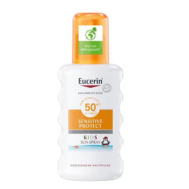 La technologie Advanced Spectral associe des filtres UVA et UVB à large spectre et photostables¹ pour une très haute protection UV avec de la Licochalcone A, qui neutralise les radicaux libres générés par les rayons UV et la lumière HEV. Le Spray Solaire pour enfants contient également de l'Acide Glycyrrhétinique qui soutient le mécanisme naturel de réparation de l'ADN de la peau. Sans parfum et extra-résistant à l'eau. Il est cliniquement et dermatologiquement prouvé que le Spray Eucerin Kids Sensitive Protect SPF 50+ est adapté à la peau sensible des enfants, y compris en cas de dermatite atopique. Il convient aux bébés à partir de 3 mois.
