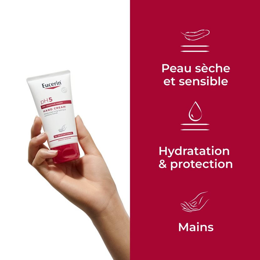 La Crème pour les Mains Eucerin pH5 offre une hydratation durable, restaure les défenses naturelles de la peau et la laisse lisse et protégée.