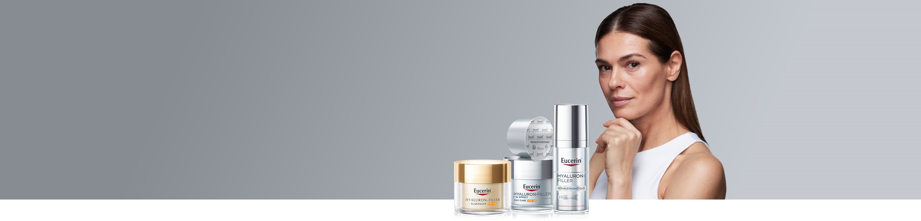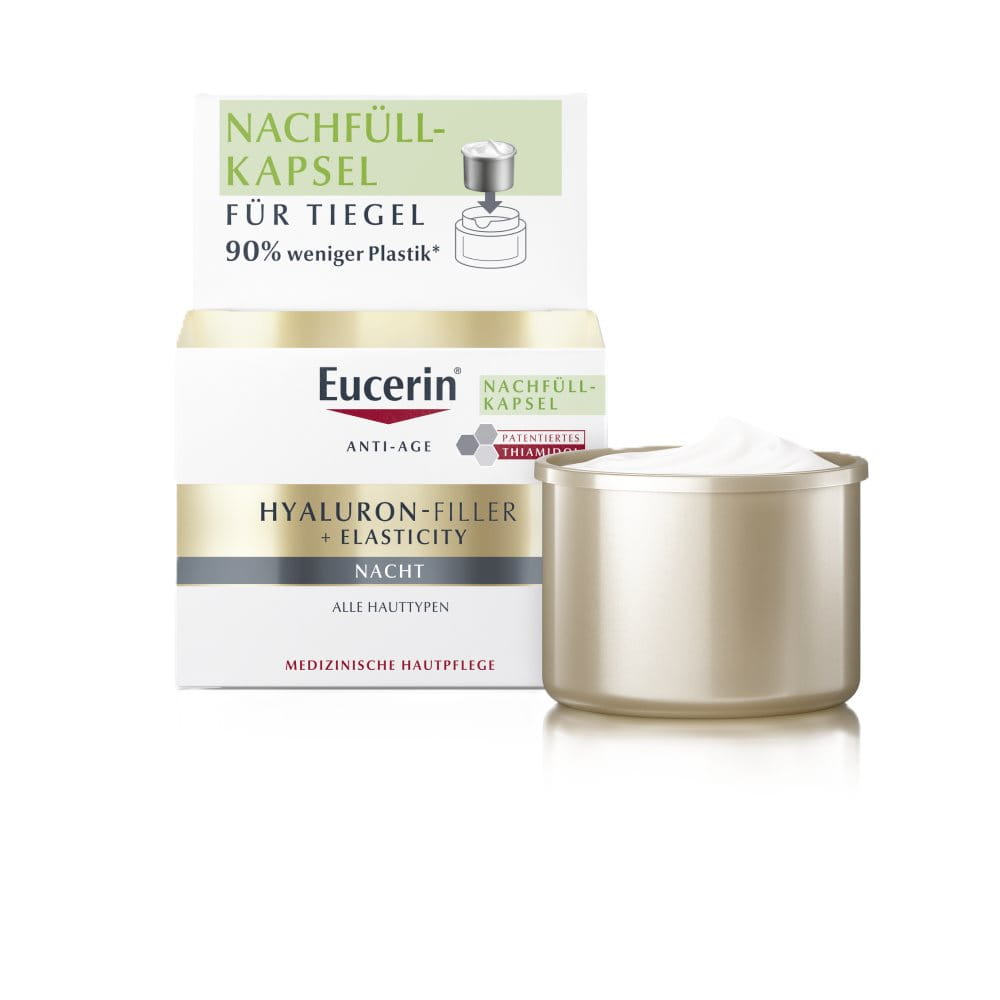 - Eucerin Hyaluron-Filler + Elasticity prend soin de la peau mature sensible. La formulation réduit les rides et les taches de vieillesse, améliore l'élasticité de la peau & renforce sa structure.