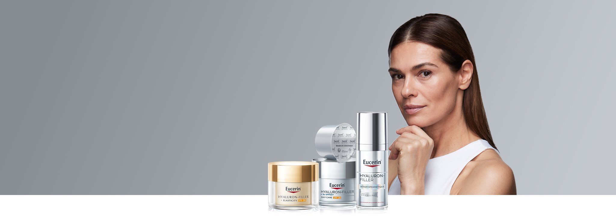 Eucerin Hyaluron-Filler offre des solutions anti-âge efficaces pour une apparence rajeunie, avec des produits adaptés à chaque étape importante du processus de vieillissement de la peau :