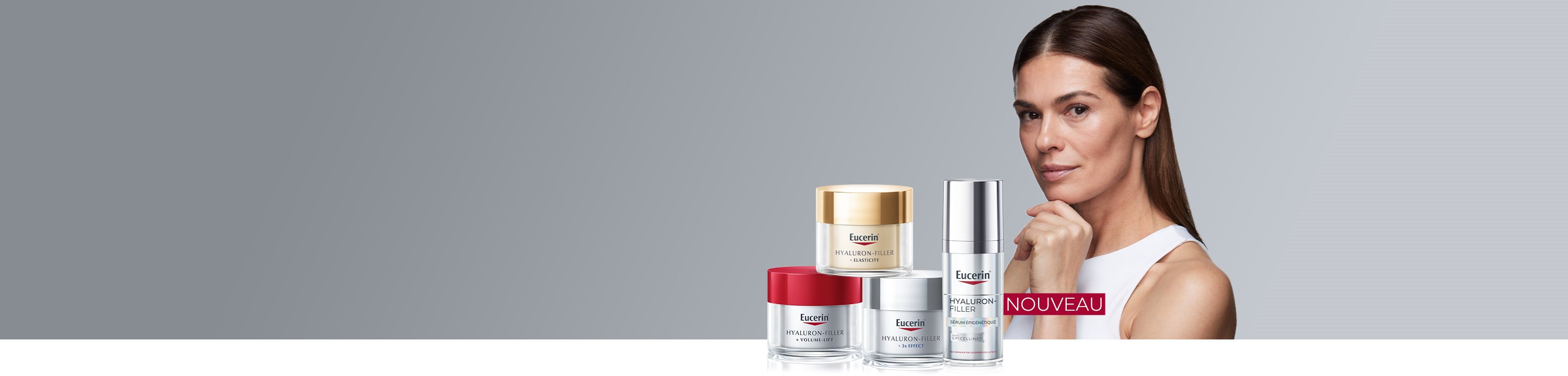 - Eucerin Hyaluron-Filler avec une formule triple effet qui agit contre le processus de vieillissement de la peau. La formulation réduit visiblement les premières rides, exerce un effet anti-oxydant et inhibe la dégradation naturelle de l'Acide Hyaluronique. Pour une peau d'apparence rajeunie, plus lisse et radieuse.